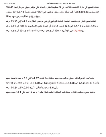 %0.43 ﮫﻌﺟارﺗﺑ ﻲﺑد قوﺳ رﺷؤﻣ ﻰﻠﻋ كوﻧﺑﻟاو رﺎﻘﻌﻟا طوﻐﺿ لظ ﻲﻓ ،ءﺎﺛﻼﺛﻟا ،بذﺑذﺗﻟا ةرﺋاد ﻰﻟإ مﮭﺳﻷا تدﺎﻋ