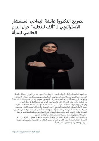 ةلود يف ةأرملا ىلإ ةيحتلاو ةئنهتلاب »ميلعتلل فلأ« يف مدقتن ،ةأرملل يملاعلا مويلا ةبسانمبو