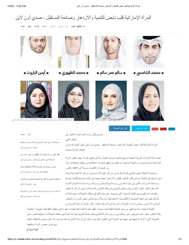 4/4/25, 11:25 AM نﯾﻻ نوأ يدﺻ - لﺑﻘﺗﺳﻣﻟا ﺔﻌﻧﺎﺻو رﺎھدزﻻاو ﺔﯾﻣﻧﺗﻠﻟ ضﺑﺎﻧ بﻠﻗ ﺔﯾﺗارﺎﻣﻹا ةأرﻣﻟا
