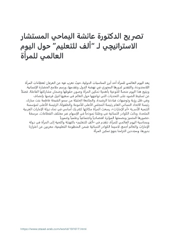 ةلود يف ةأرملا ىلإ ةيحتلاو ةئنهتلاب »ميلعتلل فلأ« يف مدقتن ،ةأرملل يملاعلا مويلا ةبسانمبو