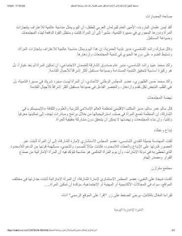 عﺎﻨﺻ ﻦﻣ ﺔﯿﺗارﺎﻣﻹا ةأﺮﻤﻟا نأ ﮫﯿﻓ ﺪﻛﺆﻨﻟ ﺔﺒﺳﺎﻨﻣ ﻮھ ﻲﻤﻟﺎﻌﻟا ةأﺮﻤﻟا مﻮﯾ نأو ،تارﺎﻣﻹا ﺔﻟود ﻲﻓ ﮫﺑ ﻰﻈﺤﺗ يﺬﻟا