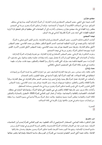 ،ﺔﻴﺗارﺎﻣﻹا ةأﺮﻤﻟا تازﺎﺠﻧﺈﺑ ﺎﻫﺮﺨﻓ ﻦﻋ ،ﺔﻗرﺎﺸﻟا ةرﺎﻣﻹ يرﺎﺸﺘﺳﻻا ﺲﻠﺠﻤﻟا ﻮﻀﻋ ،ﺑﺎﻋﺰﻟا ﺔﻴﻗر ةرﻮﺘﻛﺪﻟا تﺮﺒﻋو