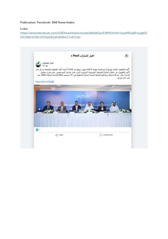 Publication: Facebook- UAE News Arabic Links: https://www.facebook.com/UAENewsArabic/posts/pfbid0QynEHMN3n4m1qxyHRUjzDr3yugKEi MC3NtC4TWs15TPEpNhJyFwSWxkTTiutYiHpl