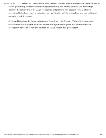 7/18/25, 3:39 PM Statement by H.E. Ahmad Saeed bin Meshar Al Muhairi SLC Secretary General on “Union Pledge Day” - Middle East News 247