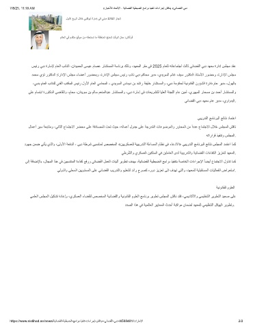 سﯾﺋر ﻲﺑد ةرﺎﻣﻹ مﺎﻌﻟا بﺋﺎﻧﻟا ،نادﯾﻣﺣﻟا ﻰﺳﯾﻋ مﺎﺻﻋ رﺎﺷﺗﺳﻣﻟا ﺔﺳﺎﺋرﺑ كﻟذو ،دﮭﻌﻣﻟا رﻘﻣ ﻲﻓ 2025 مﺎﻌﻠﻟ ﮫﺗﺎﻋﺎﻣﺗﺟا ثﻟﺎﺛ ﻲﺋﺎﺿﻘﻟا ﻲﺑد دﮭﻌﻣ ةرادإ سﻠﺟﻣ دﻘﻋ