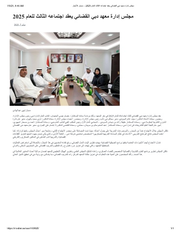 7/9/25, 8:46 AM رﺎﺑﺧﻸﻟ رﺎﺑﺳﻣ – 2025 مﺎﻌﻠﻟ ثﻟﺎﺛﻟا ﮫﻋﺎﻣﺗﺟا دﻘﻌﯾ ﻲﺋﺎﺿﻘﻟا ﻲﺑد دﮭﻌﻣ ةرادإ سﻠﺟﻣ
