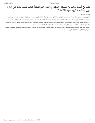 ةرﺎﻣإ ﻲﻓ تﺎﻌﯾرﺷﺗﻠﻟ ﺎﯾﻠﻌﻟا ﺔﻧﺟﻠﻟا مﺎﻋ نﯾﻣأ يرﯾﮭﻣﻟا رﺎﺣﺳﻣ نﺑ دﯾﻌﺳ دﻣﺣأ ﺢﯾرﺻﺗ