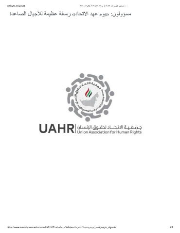 7/18/25, 8:32 AM ةدﻋﺎﺻﻟا لﺎﯾﺟﻸﻟ ﺔﻣﯾظﻋ ﺔﻟﺎﺳر «دﺎﺣﺗﻻا دﮭﻋ موﯾ» :نوﻟوؤﺳﻣ ةﺪﻋﺎﺼﻟا لﺎﯿﺟﻸﻟ ﺔﻤﯿﻈﻋ ﺔﻟﺎﺳر «دﺎﺤﺗﻻا ﺪﮭﻋ مﻮﯾ» :نﻮﻟوﺆﺴﻣ https://www.masralyoum.net/emarat/8951207/ةدﻋﺎﺻﻟا-لﺎﯾﺟﻸﻟ-ﺔﻣﯾظﻋ-ﺔﻟﺎﺳر-دﺎﺣﺗﻻا-دﮭﻋ-موﯾ-نوﻟوؤﺳﻣ#google_vignette 1/5