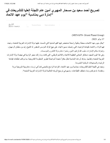7/18/25, 8:32 AM دﺎﺣﺗﻻا دﮭﻋ موﯾ" ﺔﺑﺳﺎﻧﻣﺑ ﻲﺑد ةرﺎﻣإ ﻲﻓ تﺎﻌﯾرﺷﺗﻠﻟ ﺎﯾﻠﻌﻟا ﺔﻧﺟﻠﻟا مﺎﻋ نﯾﻣأ يرﯾﮭﻣﻟا رﺎﺣﺳﻣ نﺑ دﯾﻌﺳ دﻣﺣأ ﺢﯾرﺻﺗ"