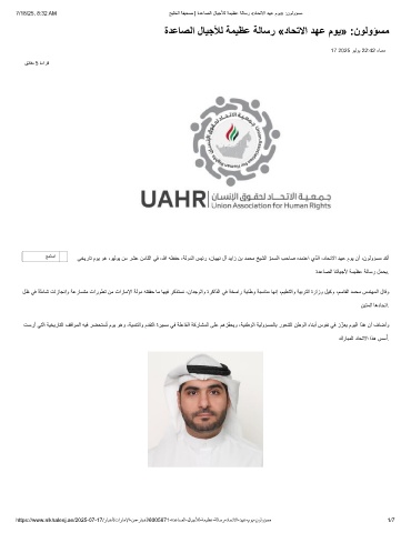 https://www.alkhaleej.ae/2025-07-17/رﺎﺑﺧأ/تارﺎﻣﻹا-نﻣ-رﺎﺑﺧأ/6005671-ةدﻋﺎﺻﻟا-لﺎﯾﺟﻸﻟ-ﺔﻣﯾظﻋ-ﺔﻟﺎﺳر-دﺎﺣﺗﻻا-دﮭﻋ-موﯾ-نوﻟوؤﺳﻣ 1/7