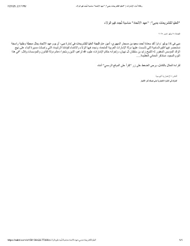 7/21/25, 2:17 PM ءﻻوﻟا مﯾﻗ ددﺟُﺗ ﺔﺑﺳﺎﻧﻣ "دﺎﺣﺗﻻا دﮭﻋ" :"ﻲﺑدﺑ تﺎﻌﯾرﺷﺗﻠﻟ ﺎﯾﻠﻌﻟا" | تارﺎﻣﻹا ءﺎﺑﻧأ ﺔﻟﺎﻛو