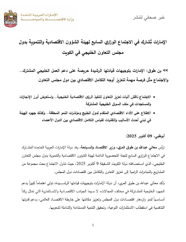 كرﺎــــﺸﻤﻟا ةدﺤﺘﻤﻟا ﺔﯿﺒرﻌﻟا تارﺎﻤﻹا ﺔﻟود دﻓو ، ﺔﺤﺎ�ــسﻟاو دﺎــصتﻗﻻا ر�زو ،ي رمﻟا قوط نﺒ ﷲدبﻋ ﻲﻟﺎﻌﻤ سأرﺘ