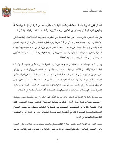 زﻛﺘرﯿو ،ﻲــــﻀﺎﻤﻟا وﯿﻟوﯿ ﻲﻓ ﺔﻤظﻨﻤﻟا ﻊﻤ ﺔﻛارــــﺸﻟﺎﺒ ﺔﺤﺎﯿــــﺴﻟاو دﺎــــﺼﺘﻗﻻا ةرازو ﻪﺘﻘﻠطأ يذﻟا ، ﺔﻟودﻠﻟ ﺔﯿدﺎــــﺼﺘﻗﻻا