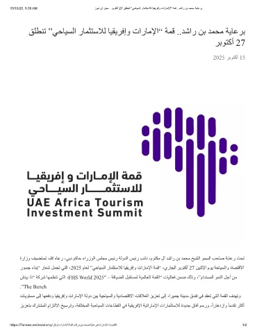 رﻮﺴﺟ ءﺎﻨﺑ“ رﺎﻌﺷ ﻞﻤﺤﺗ ﻲﺘﻟا ،2025 مﺎﻌﻟ ”ﻲﺣﺎﯿﺴﻟا رﺎﻤﺜﺘﺳﻼﻟ ﺎﯿﻘﯾﺮﻓإو تارﺎﻣﻹا ﺔﻤﻗ“ ،يرﺎﺠﻟا ﺮﺑﻮﺘﻛأ 27 ﻦﯿﻨﺛﻹا مﻮﯾ ﺔﺣﺎﯿﺴﻟاو دﺎﺼﺘﻗﻻا