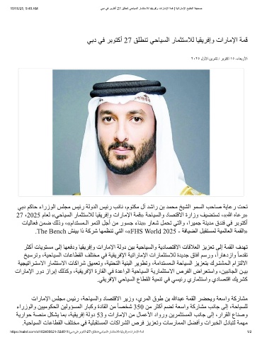 .The Bench ﺶﻨﯿﺑ اذ ﺔﻛﺮﺷ ﺎﮭﻤﻈﻨﺗ ﻲﺘﻟا ،«FHS World 2025 - ﺔﻓﺎﯿﻀﻟا ﻞﺒﻘﺘﺴﻤﻟ ﺔﯿﻤﻟﺎﻌﻟا ﺔﻤﻘﻟا»