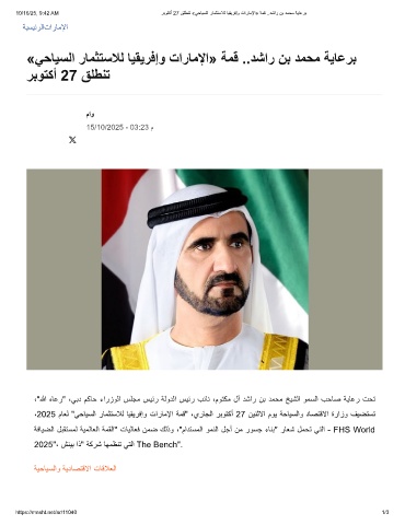 10/16/25, 9:42 AM رﺑوﺗﻛأ 27 ﻖﻠطﻧﺗ «ﻲﺣﺎﯾﺳﻟا رﺎﻣﺛﺗﺳﻼﻟ ﺎﯾﻘﯾرﻓإو تارﺎﻣﻹا» ﺔﻣﻗ ..دﺷار نﺑ دﻣﺣﻣ ﺔﯾﺎﻋرﺑ
