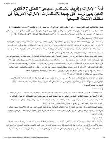 رﺑوﺗﻛأ 27 ﻖﻠطﻧﺗ "ﻲﺣﺎﯾﺳﻟا رﺎﻣﺛﺗﺳﻼﻟ ﺎﯾﻘﯾرﻓإو تارﺎﻣﻹا" ﺔﻣﻗ