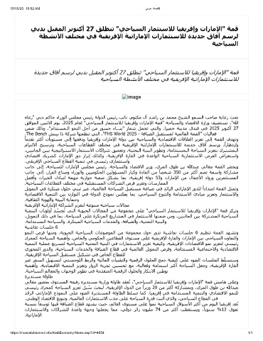 ﻲﺑﺪﺑ ﻞﺒﻘﻤﻟا ﺮﺑﻮﺘﻛأ 27 ﻖﻠﻄﻨﺗ "ﻲﺣﺎﯿﺴﻟا رﺎﻤﺜﺘﺳﻼﻟ ﺎﯿﻘﻳﺮﻓإو تارﺎﻣﻹا" ﺔﻤﻗ