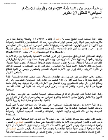 رﺎﻌﺷ ﻞﻤﺤﺗ ﻲﺘﻟا ،2025 مﺎﻌﻟ "ﻲﺣﺎﯿﺴﻟا رﺎﻤﺜﺘﺳﻼﻟ ﺎﯿﻘﯾﺮﻓإو تارﺎﻣﻹا ﺔﻤﻗ" ،يرﺎﺠﻟا ﺮﺑﻮﺘﻛأ 27 ﻦﯿﻨﺛﻹا مﻮﯾ