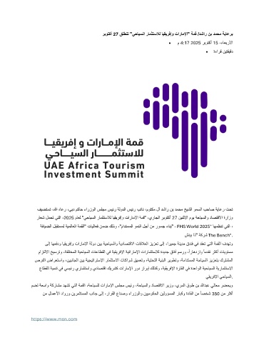 راعش لمحت يتلا ، 2025 ماعل "يحايسلا رامثتسلال ايقيرفإو تاراملإا ةمق" ،يراجلا ربوتكأ 27 نينثلإا موي ةحايسلاو داصتقلاا ةرازو