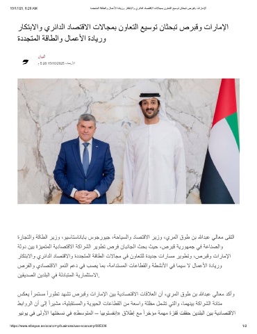 10/17/25, 8:29 AM ةددﺟﺗﻣﻟا ﺔﻗﺎطﻟاو لﺎﻣﻋﻷا ةدﺎﯾرو رﺎﻛﺗﺑﻻاو يرﺋادﻟا دﺎﺻﺗﻗﻻا تﻻﺎﺟﻣﺑ نوﺎﻌﺗﻟا ﻊﯾﺳوﺗ نﺎﺛﺣﺑﺗ صرﺑﻗو تارﺎﻣﻹا