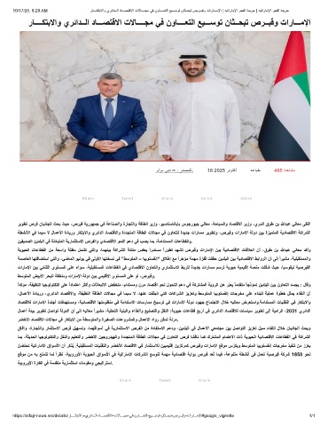 10/17/25, 8:29 AM رﺎــــﻛﺗﺑﻻاو يرﺋادــﻟا دﺎـــﺻﺗﻗﻻا تﻻﺎــــﺟﻣ ﻲﻓ نوﺎــــﻌﺗﻟا ﻊﯾـــﺳوﺗ نﺎﺛــﺣﺑﺗ صرــﺑﻗو تارﺎـــﻣﻹا | ﮫﯾﺗارﺎﻣﻹا رﺟﻔﻟا ةدﯾرﺟ | ﮫﯾﺗارﺎﻣﻹا رﺟﻔﻟا ةدﯾرﺟ