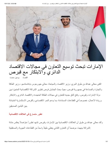 10/17/25, 8:30 AM تارﺎﻣﻹا قرﺑ - صرﺑﻗ ﻊﻣ رﺎﻛﺗﺑﻻاو يرﺋادﻟا دﺎﺻﺗﻗﻻا تﻻﺎﺟﻣ ﻲﻓ نوﺎﻌﺗﻟا ﻊﯾﺳوﺗ ثﺣﺑﺗ تارﺎﻣﻹا