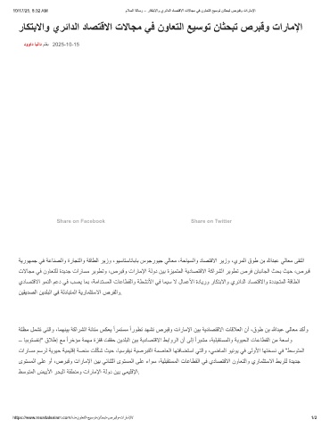 10/17/25, 8:32 AM مﻼﺳﻟا ﺔﻟﺎﺳر – رﺎﻛﺗﺑﻻاو يرﺋادﻟا دﺎﺻﺗﻗﻻا تﻻﺎﺟﻣ ﻲﻓ نوﺎﻌﺗﻟا ﻊﯾﺳوﺗ نﺎﺛﺣﺑﺗ صرﺑﻗو تارﺎﻣﻹا