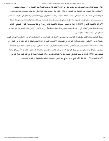ﺔﯾﺗارﺎﻣﻹا قاوﺳﻷا نأ رﻛذُﯾ .ﺔﯾﻠﺑﻘﺗﺳﻣﻟا تﺎﯾﻧﻘﺗﻟاو رﺿﺧﻷا دﺎﺻﺗﻗﻻا ﻲﻓ رﺎﻣﺛﺗﺳﻼﻟ نﯾﯾﻣﯾﻠﻗإ نﯾزﻛرﻣﻛ صرﺑﻗو تارﺎﻣﻹا ﻊﻗوﻣ س ّ رﻛﯾو
