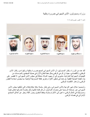 10/13/25, 8:06 AM ﺔﯾﻧطو ةرورﺿ ﻲﻧارﺑﯾﺳﻟا نﻣﻷا :نوﻟوؤﺳﻣو ءارزو | ﺔﯾﺗارﺎﻣﻹا ﺞﯾﻠﺧﻟا ﺔﻔﯾﺣﺻ