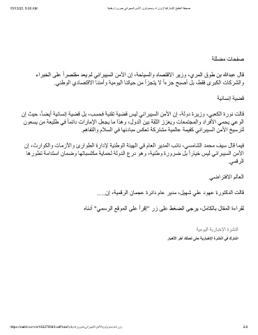 ءاﺮﺒﺨﻟا ﻰﻠﻋ اﺮﺼﺘﻘﻣ ﺪﻌﯾ ﻢﻟ ﻲﻧاﺮﺒﯿﺴﻟا ﻦﻣﻷا نإ ،ﺔﺣﺎﯿﺴﻟاو دﺎﺼﺘﻗﻻا ﺮﯾزو ،يﺮﻤﻟا قﻮط ﻦﺑ ﷲﺪﺒﻋ لﺎﻗ