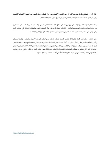 ةيجيلخلا ةيداصتقلاا ةدحولا وحن دوهجلا عفدو ،سلجملا لود نيب يداصتقلاا لماكتلا هجوأ زيزعتل ةمهم ةصرف لثم عامتجلاا نأ ىلإ راشأو