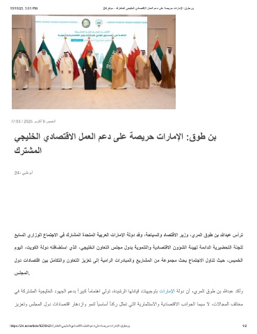 10/10/25, 3:01 PM 24 ﻊﻗوﻣ - كرﺗﺷﻣﻟا ﻲﺟﯾﻠﺧﻟا يدﺎﺻﺗﻗﻻا لﻣﻌﻟا مﻋد ﻰﻠﻋ ﺔﺻﯾرﺣ تارﺎﻣﻹا :قوط نﺑ