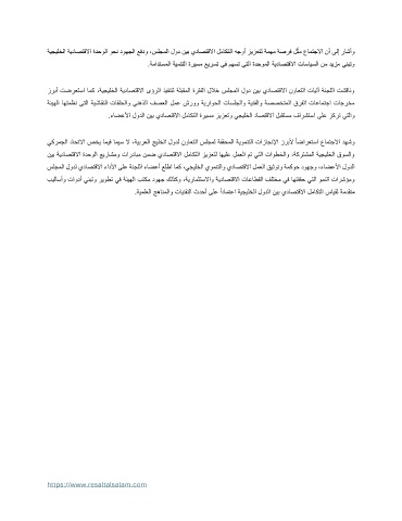 ةيجيلخلا ةيداصتقلاا ةدحولا وحن دوهجلا عفدو ،سلجملا لود نيب يداصتقلاا لماكتلا هجوأ زيزعتل ةمهم ةصرف لثم عامتجلاا نأ ىلإ راشأو