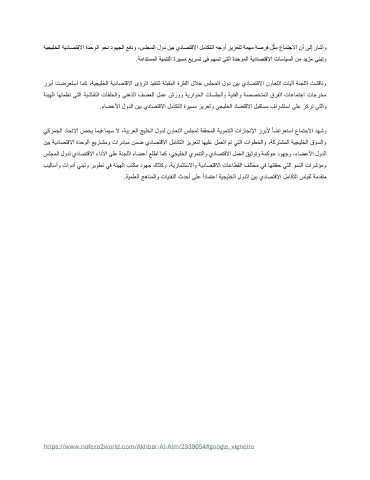 ةيجيلخلا ةيداصتقلاا ةدحولا وحن دوهجلا عفدو ،سلجملا لود نيب يداصتقلاا لماكتلا هجوأ زيزعتل ةمهم ةصرف لثم عامتجلاا نأ ىلإ راشأو