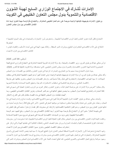 ،2025 رﺑوﺗﻛأ 9 ﺔﻘﯾﻘﺷﻟا تﯾوﻛﻟا ﺔﻟود ﮫﺗﻓﺎﺿﺗﺳا يذﻟا ،ﻲﺟﯾﻠﺧﻟا نوﺎﻌﺗﻟا سﻠﺟﻣ لودﺑ ﺔﯾوﻣﻧﺗﻟاو ﺔﯾدﺎﺻﺗﻗﻻا نوؤﺷﻟا ﺔﺋﯾﮭﻟ ﺔﻣﺋادﻟا ﺔﯾرﯾﺿﺣﺗﻟا