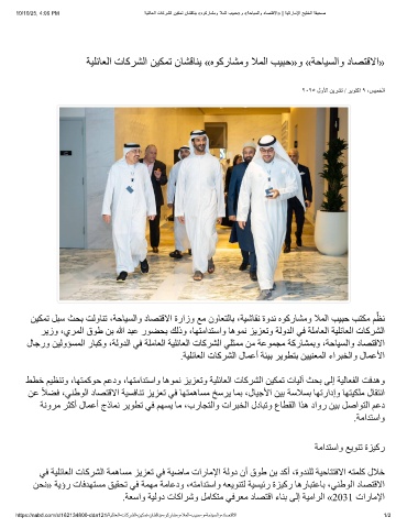 ﻲﻓ ﺔﯿﻠﺋﺎﻌﻟا تﺎﻛﺮﺸﻟا ﺔﻤھﺎﺴﻣ ﺰﯾﺰﻌﺗ ﻲﻓ ﺔﯿﺿﺎﻣ تارﺎﻣﻹا ﺔﻟود نأ قﻮط ﻦﺑ ﺪﻛأ ،ةوﺪﻨﻠﻟ ﺔﯿﺣﺎﺘﺘﻓﻻا ﮫﺘﻤﻠﻛ لﻼﺧ