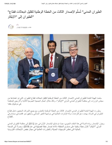 10/8/25, 9:42 AM "وﺎﻛﯾﻹا" ﻰﻟإ نارﯾطﻟا عﺎطﻗ تﺎﺛﺎﻌﺑﻧا لﯾﻠﻘﺗﻟ ﺔﯾﻧطوﻟا ﺔطﺧﻟا نﻣ ثﻟﺎﺛﻟا رادﺻﻹا م ّ ﻠﺳُﺗ "ﻲﻧدﻣﻟا نارﯾطﻟا"