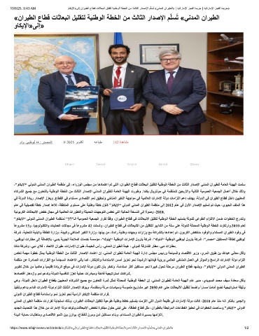 10/8/25, 9:43 AM وﺎﻛﯾﻹا»ﻰﻟإ نارﯾطﻟا عﺎطﻗ تﺎﺛﺎﻌﺑﻧا لﯾﻠﻘﺗﻟ ﺔﯾﻧطوﻟا ﺔطﺧﻟا نﻣ ثﻟﺎﺛﻟا رادﺻﻹا م ّ ﻠﺳُﺗ «ﻲﻧدﻣﻟا نارﯾطﻟا» | ﮫﯾﺗارﺎﻣﻹا رﺟﻔﻟا ةدﯾرﺟ | ﮫﯾﺗارﺎﻣﻹا رﺟﻔﻟا ةدﯾرﺟ»