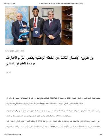 10/8/25, 9:43 AM 24 ﻊﻗوﻣ - ﻲﻧدﻣﻟا نارﯾطﻟا ةدﺎﯾرﺑ تارﺎﻣﻹا مازﺗﻟا سﻛﻌﯾ ﺔﯾﻧطوﻟا ﺔطﺧﻟا نﻣ ثﻟﺎﺛﻟا رادﺻﻹا :قوط نﺑ