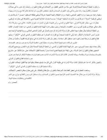 تﻻﺎﺠﻣ ﻲﻓ ً ﺎﻋوﺮﺸﻣ 42 ﺖﻠﻤﺷو ،ناﺮﯿﻄﻟا عﺎﻄﻗ ﻲﻓ تﺎﺛﺎﻌﺒﻧﻻا ﻦﻣ ﻞﯿﻠﻘﺘﻠﻟ ﺮﯿﺑاﺪﺘﻟا ﻦﻣ ﺔﻠﺳ ﻰﻠﻋ ﺔﻟوﺪﻠﻟ ﺔﺛﺪﺤﻤﻟا ﺔﯿﻨطﻮﻟا ﺔﻄﺨﻟا تﺰﻜﺗراو
