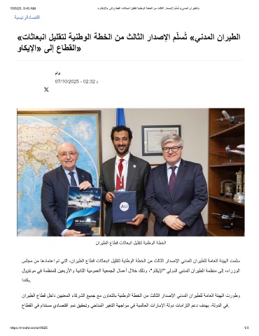 10/8/25, 9:45 AM «وﺎﻛﯾﻹا» ﻰﻟإ عﺎطﻘﻟا تﺎﺛﺎﻌﺑﻧا لﯾﻠﻘﺗﻟ ﺔﯾﻧطوﻟا ﺔطﺧﻟا نﻣ ثﻟﺎﺛﻟا رادﺻﻹا م ّ ﻠﺳُﺗ «ﻲﻧدﻣﻟا نارﯾطﻟا»