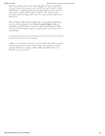 ةردﺎﺑﻣ ﻲﻓ تازﺋﺎﻔﻟا مﯾرﻛﺗ ﺔﯾﻟﺎﻌﻓو "ﺔﺣﺎﯾﺳﻟا "Best Tourism Village" ﺎﮭﺗﻘﻠطأ ﻲﺗﻟا