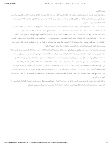 ةردﺎﺑﻣ ﻲﻓ تازﺋﺎﻔﻟا مﯾرﻛﺗ ﺔﯾﻟﺎﻌﻓو «ﺔﺣﺎﯾﺳﻟا لﺑﻘﺗﺳﻣ ﻲﻓ ﺔﯾﺋﺎﺳﻧﻟا تادﺎﯾﻘﻟا» ﺔﯾﻟﺎﻌﻓ سﯾوﻧﻟا ترﺿﺣ ،ضرﻌﻣﻟا تﺎﯾﻟﺎﻌﻓ لﻼﺧو «Best Tourism Village» ﻲﺗﻟا