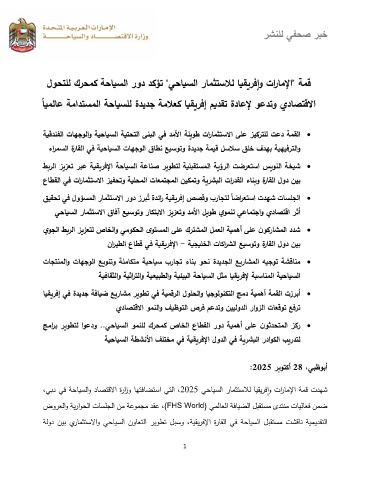 ، ﻲﺒد ﻲﻓ ﺔﺤﺎﯿﺴﻟاو دﺎﺼﺘﻗﻻا ةرازو ﺎﻬﺘﻓﺎﻀﺘﺴا ﻲﺘﻟا ، 2025 ﻲﺤﺎﯿﺴﻟا رﺎﻤﺜﺘﺴﻼﻟ ﺎﯿﻘﯿرﻓاو تارﺎﻤﻹا ﺔﻤﻗ تدﻬﺸ