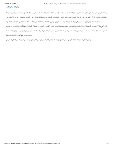 ةردﺎﺑﻣ ﻲﻓ تازﺋﺎﻔﻟا مﯾرﻛﺗ ﺔﯾﻟﺎﻌﻓو "ﺔﺣﺎﯾﺳﻟا لﺑﻘﺗﺳﻣ ﻲﻓ ﺔﯾﺋﺎﺳﻧﻟا تادﺎﯾﻘﻟا" ﺔﯾﻟﺎﻌﻓ سﯾوﻧﻟا ﺔﺧﯾﺷ ترﺿﺣ ،ضرﻌﻣﻟا تﺎﯾﻟﺎﻌﻓ لﻼﺧو "Best Tourism Village" ﻲﺗﻟا