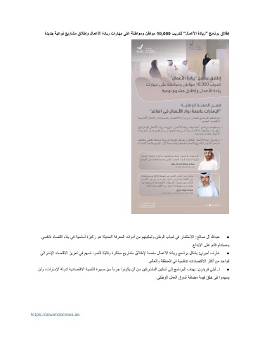 نأو ،تاراملإا ةلودل ةيداصتقلاا ةيمنتلا ةريسم نم ًاءزج اونوكي نأ نم نيكراشملا نيكمت ىلإ جمانربلا فدهي :نوديرف ىليل .د ●