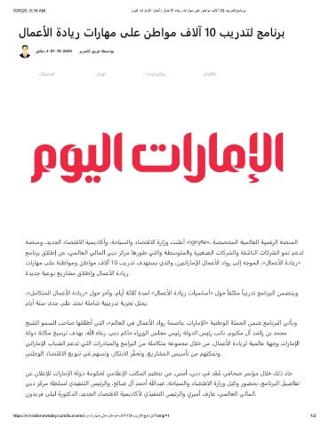 10/8/25, 8:34 AM موﯾﻟا تارﺎﻣﻹا رﺎﺑﺧأ | لﺎﻣﻋﻷا ةدﺎﯾر تارﺎﮭﻣ ﻰﻠﻋ نطاوﻣ فﻻآ 10 بﯾردﺗﻟ ﺞﻣﺎﻧرﺑ