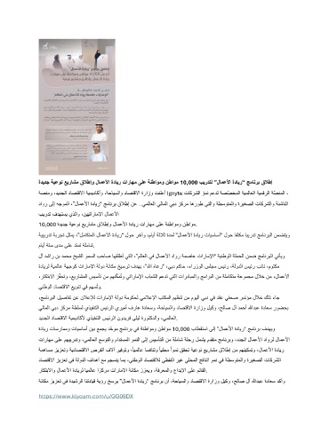 لآ دشار نب دمحم خيشلا ومسلا بحاص اهقلطأ يتلا ،”ملاعلا يف لامعلأا داور ةمصاع تاراملإا“ ةينطولا ةلمحلا نمض جمانربلا يتأيو