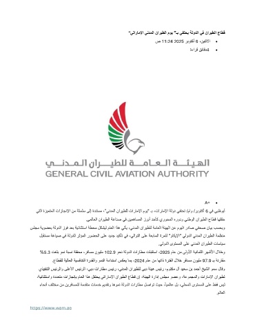 " يتاراملإا يندملا ناريطلا موي "ـب يفتحي ةلودلا يف ناريطلا عاطق